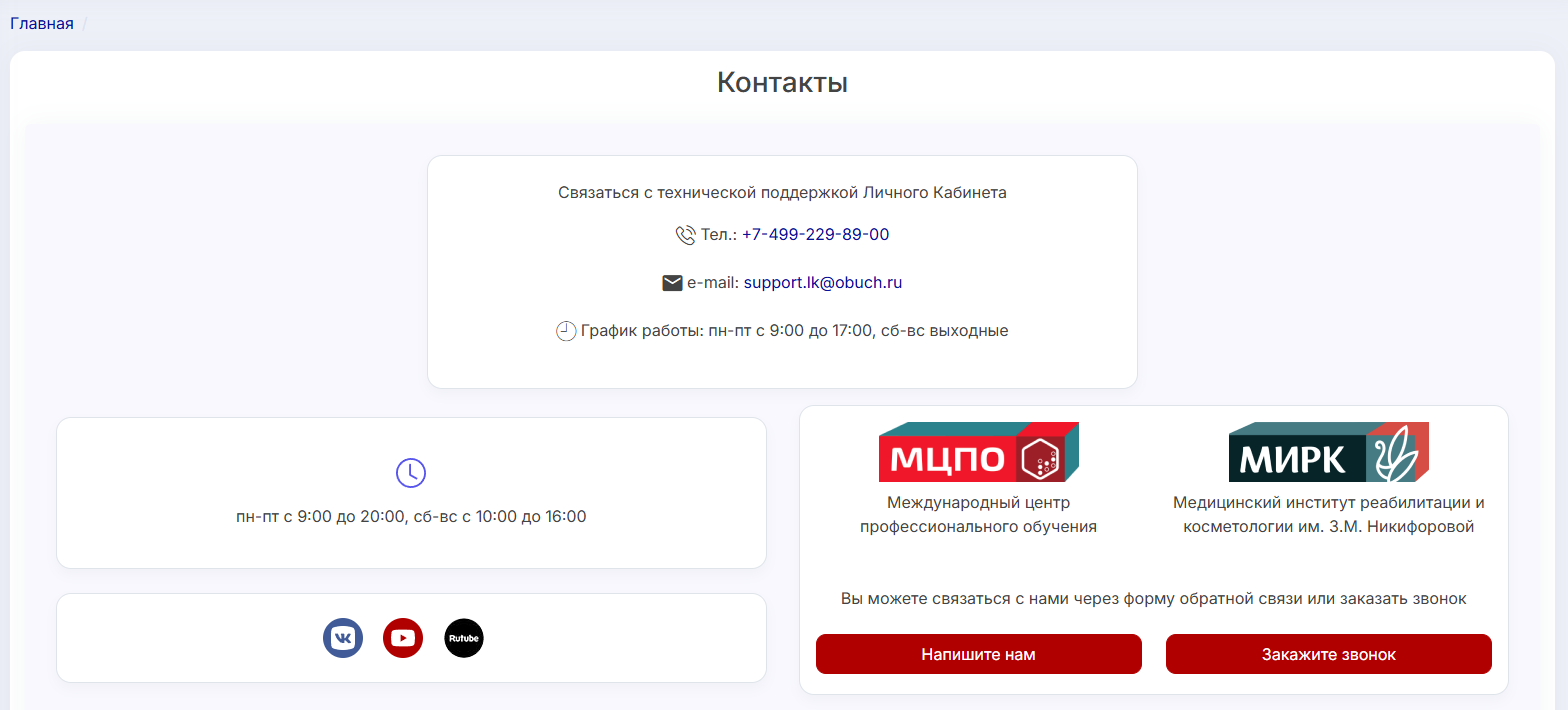 - "О МЦПО / О МИРК" — информация о МЦПО и МИРК.