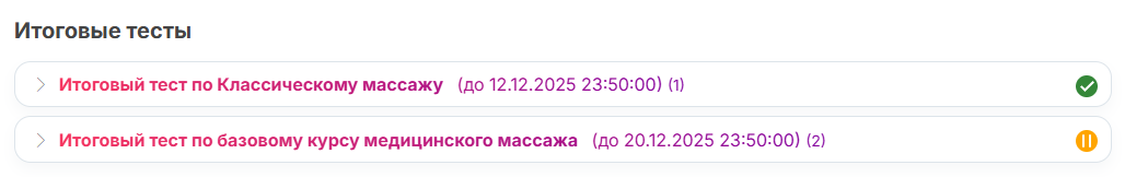 - "Завершенные курсы" — все пройденные курсы.